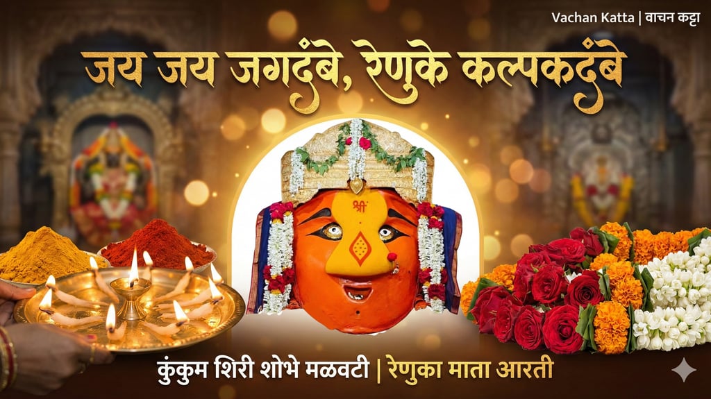 माहूरगडाच्या रेणुका मातेचे अतिशय सुंदर रूप वर्णन करणारी 'जय जय जगदंबे' ही आरती आणि तिचा सविस्तर भावार्थ वाचा. विष्णूदास यांनी रचलेली ही आरती नवरात्रीत नक्की म्हणा.